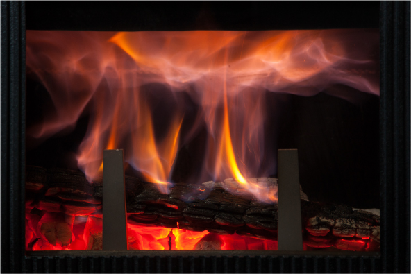 공기가 제한되어도 난로 자체 온도는 떨어지지 않으며, 깨끗한 유리창으로 불꽃을 여유 있게 즐기실 수 있습니다. 이 연소 상태에서는 깨끗한 배기가스도 나옵니다.